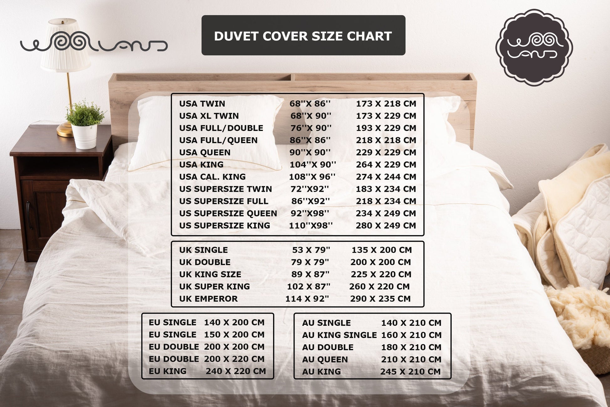 Duvet cover has hidden closure and can be chosen to be with beautiful decorative edging (white comes with golden edging, natural color with brown edging) or without edging.