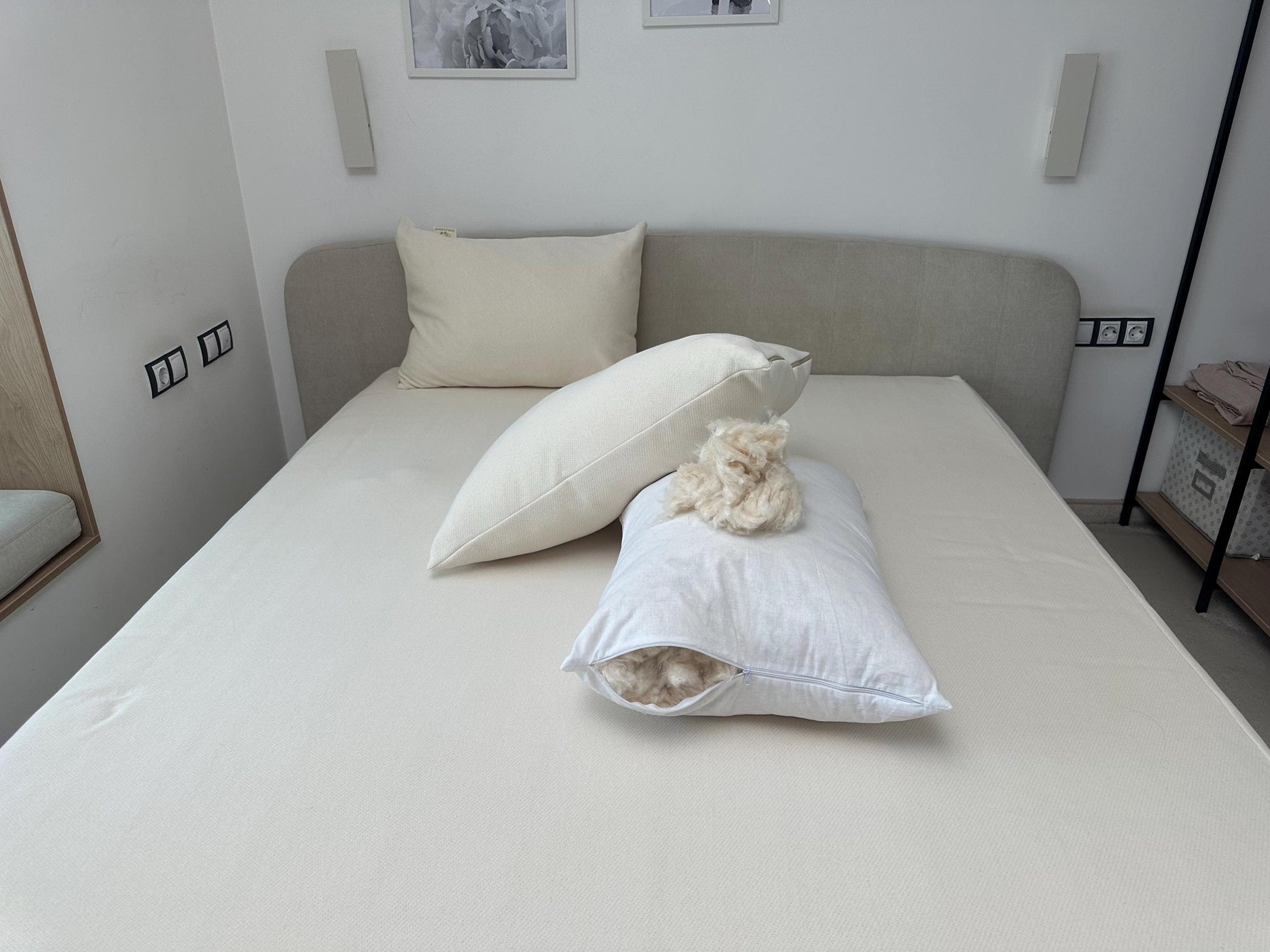 Discover our HANDMADE Organic cotton and natural kapok pillow crafted entirely from natural fibers, designed to deliver plush support and breathable sleep comfort.